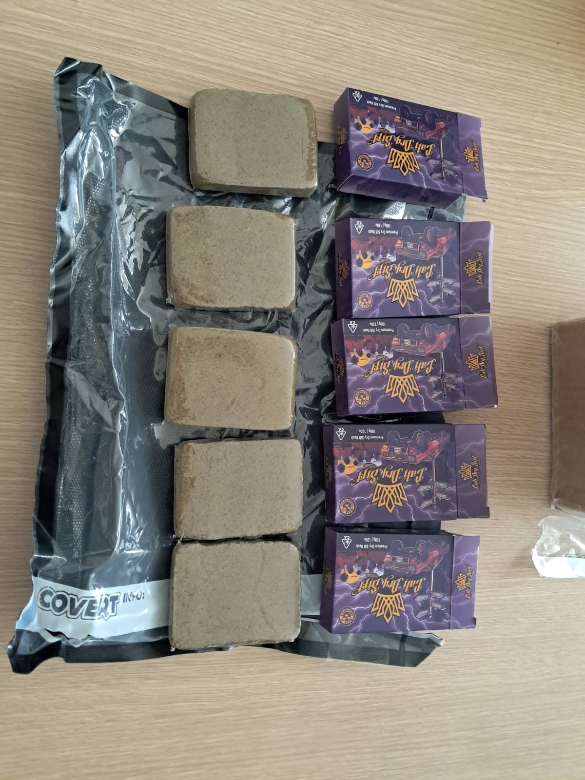 Prilikom pregleda četiri paketa pomenute pošiljke, utvrđeno je da se njihov sadržaj ne poklapa sa deklarisanom robom na pakovanju. Daljom kontrolom uočena je tamna, smolasta materija braon boje, karakterističnog jakog mirisa, za koju je postojala osnovana sumnja da se radi o opojnoj drogi hašiš.